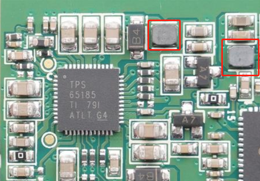 其次, 我們將視線轉(zhuǎn)移到閱讀器電路中,專門為E ink屏幕顯示設(shè)計的IC芯片,TI TPS65185,在這塊芯片的附近,我們也同樣能夠看見兩款沒有印字的貼片功率電感器。